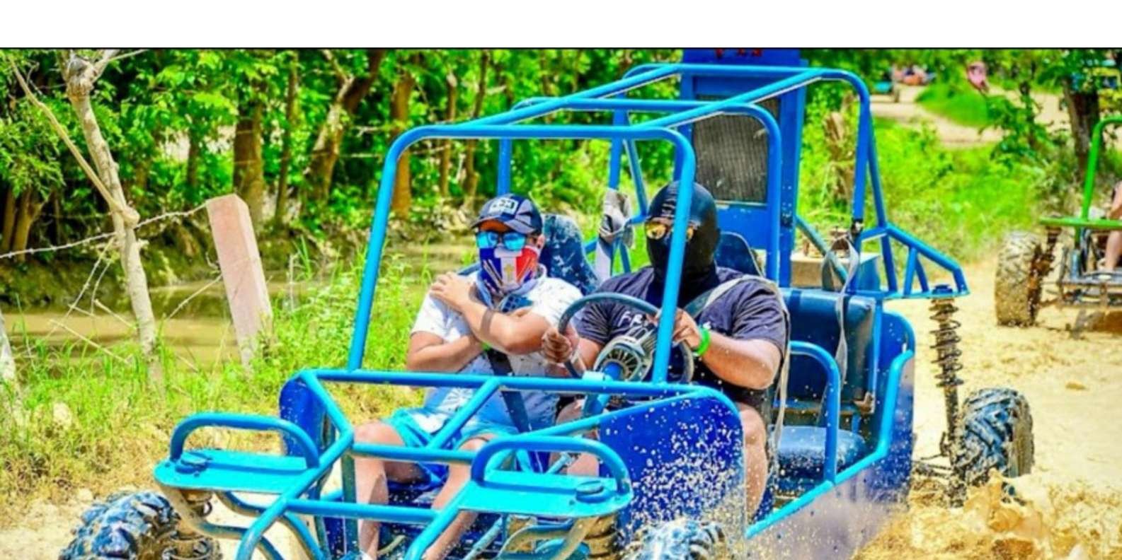 Long description Discover the natural beauty of Punta Cana on an exciting buggy adventure. This guided tour will take you through stunning landscapes, including white sand beaches and crystal clear cenotes. Perfect for adrenaline and nature lovers. Itinerary: Reception and Preparations: Pick up at the hotel and transfer to the starting point. Briefing and Equipment: Introduction to buggies and safety measures. Buggy Adventure: Driving on off-road roads, visiting a virgin beach. Cenote Exploration: Time to swim and explore. Return: Travel back to the starting point and transfer to the hotel.